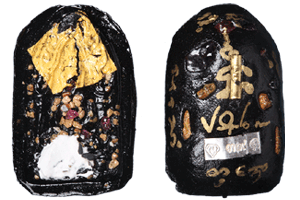 9.1 เนื้อชานหมากผสมผงพุทธคุณรวม (พิมพ์ใหญ่) ตะกรุดทองคำคู่ |