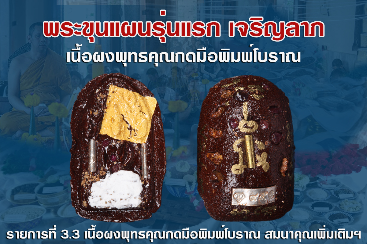 3.3 เนื้อผงพุทธคุณกดมือพิมพ์โบราณ ปิดทองลองพิมพ์ |