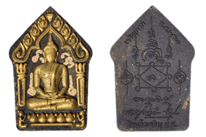 14.2 เนื้อผงพุทธคุณรวมมวลสาร (พิมพ์เล็ก) ฝังตะกรุดทองเหลือง |