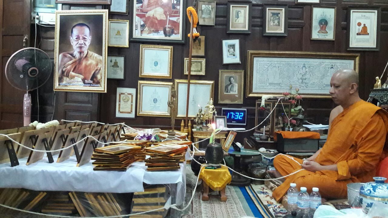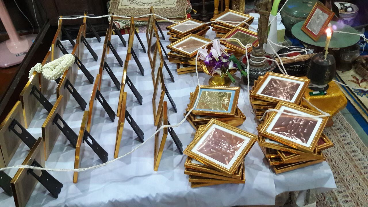 พิธีปลุกเสกแผ่นยันต์จารมือ พร้อมใส่กรอบ จำนวน 204 กรอบ (ทองเหลือง 96 /ทองแดง 108) ในฤกษ์มงคลในวันที่ 13 ต.ค.62 ภายในกุฏิวัดแก้วเจริญ