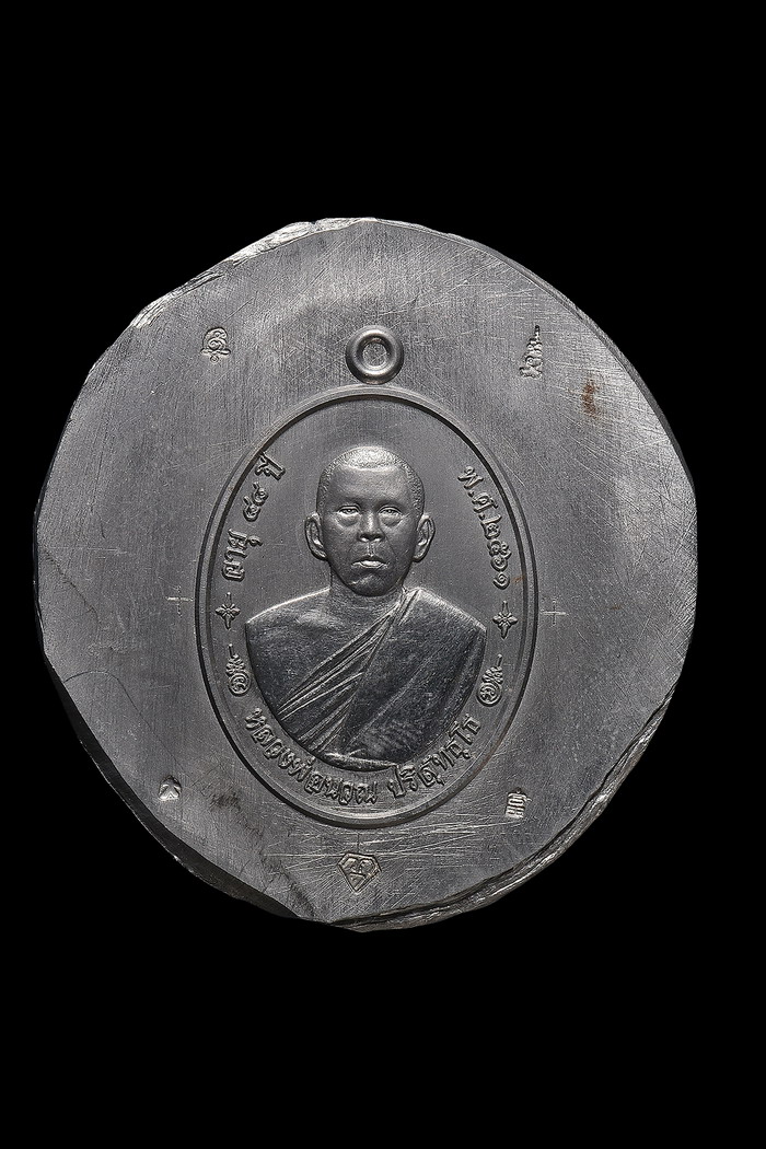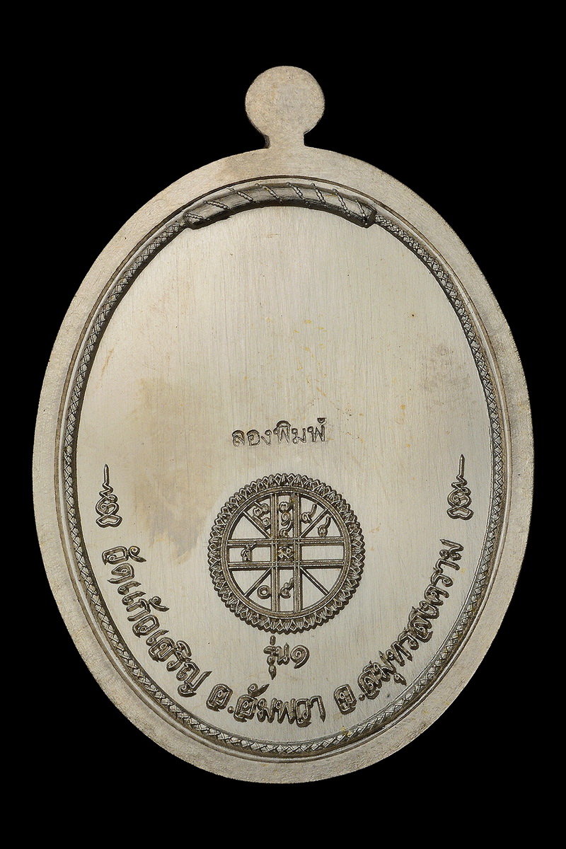 เนื้อตะกั่วลองพิมพ์ไม่ตัดปีกหลังเรียบ (ฝังตะกรุดทองคำ) 1 เหรียญ |